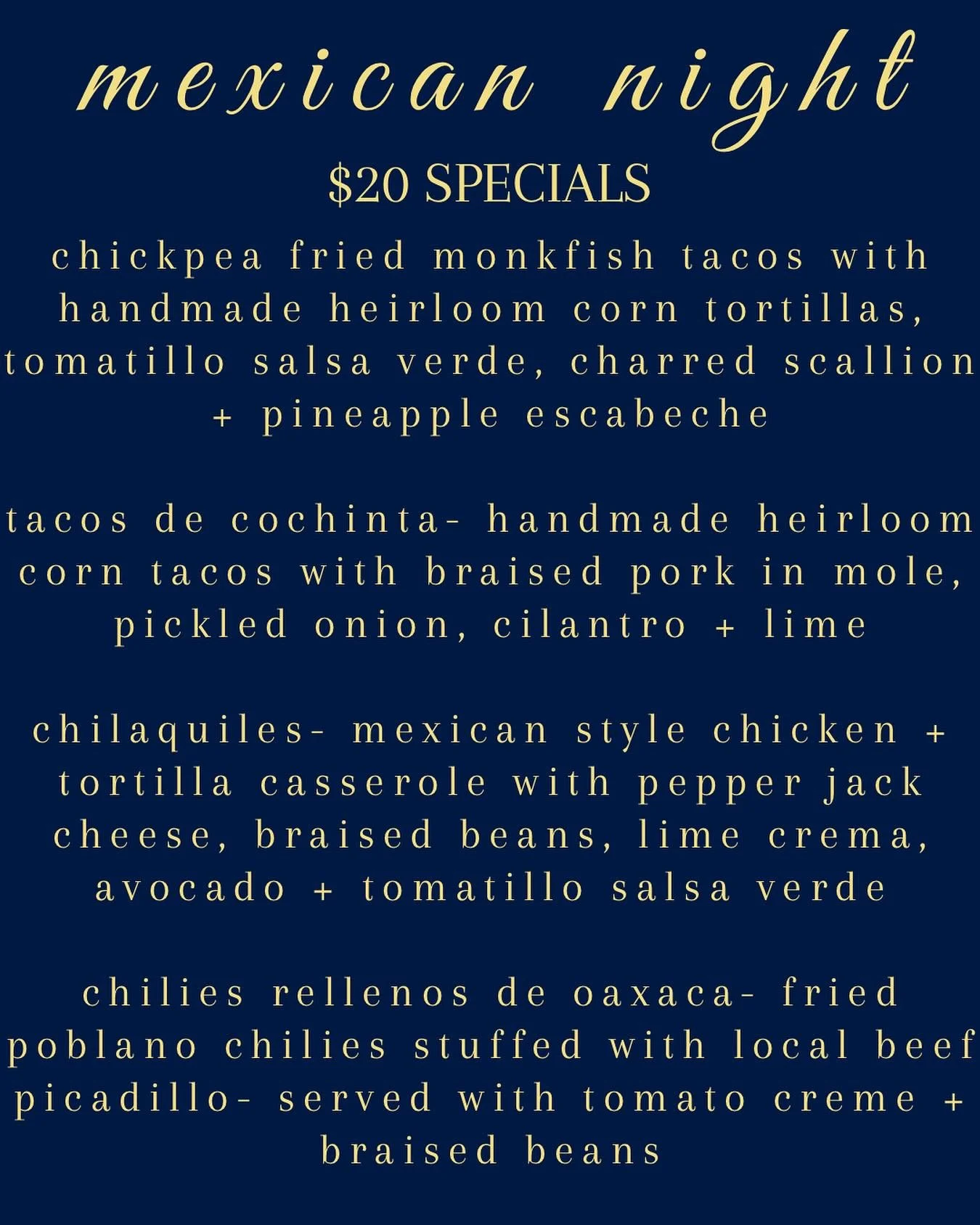 Our neighborhood restaurant showcases a chagning menu filled with inventive, farm-fresh dishes, crafted with care and served simply, all in a cozy and welcoming atmosphere.